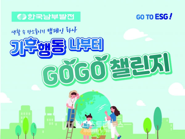 [인더스트리뉴스 정한교 기자] 한국남부발전(사장 이승우)이 임직원들의 기후위기 극복에 대한 관심도를 높이고, 저탄소 생활문화 확산을 위한 캠페인에 나선다. 남부발전은 지난 10월 25일부터 12월 6일까지 6주간 ‘기후행동 나부터 GOGO 챌린지’ 캠페인을 진행한다고 밝혔다.
