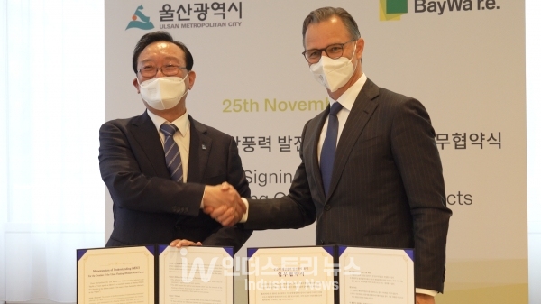 [인더스트리뉴스 정한교 기자] 바이와알이가 국내 신재생에너지 시장에서 영향력을 넓혀가고 있다. 바이와알이는 울산광역시와 부유식 해상풍력 프로젝트의 개발에 대한 양해각서(MOU)를 체결했다고 26일 밝혔다.