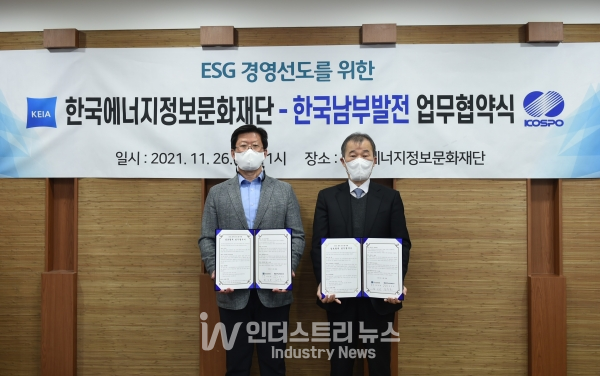 남부발전은 지난 26일 서울 금천구에 위치한 한국에너지정보문화재단 회의실에서 ‘ESG 경영 선도를 위한 상호협력 업무협약’을 체결했다고 밝혔다.