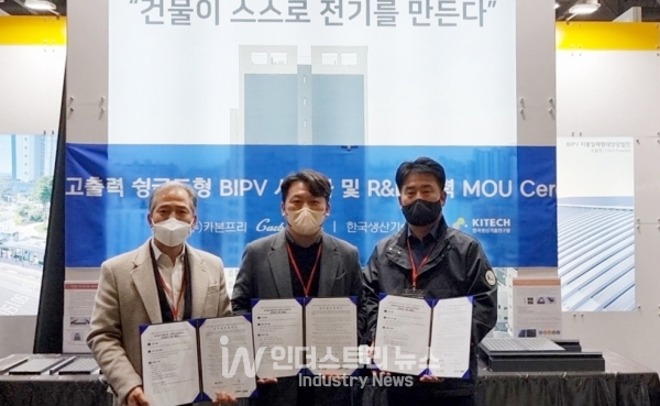 카본프리(대표 김철호, 문제현)는 한국생산기술연구원 서남본부와 지난 3일 ‘고출력 슁글드형 BIPV기술 사업화 및 R&D협력’을 위해 업무협약(MOU)을 체결했다고 밝혔다.