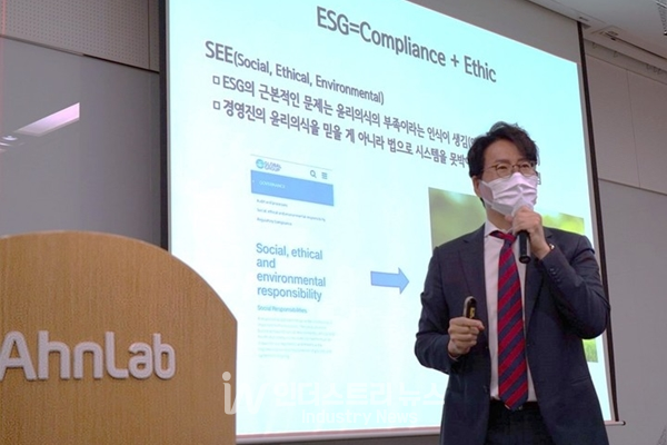 [인더스트리뉴스 이건오 기자] 안랩이 4월 ESG 경영 내재화 교육 프로그램으로 ESG중심연구소 문성후 소장을 초청해 교육을 진행했다.