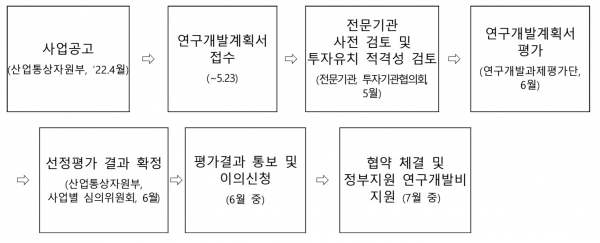 특히, 이번 사업은 민간으로부터 시장성을 검증받은 민간 투자 유치 기업을 대상으로 예산을 지원하는 투자연계형 R&D사업이다. 투자계약서 체결일 기준, 지난해 1월 1일부터 올해 5월 23일까지 민간 투자기관으로부터 투자적격대상 기준을 충족하는 투자를 유치한 경우에 한해서만 신청할 수 있다.