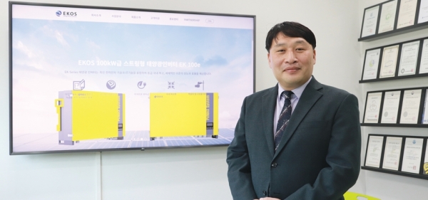 전력변환시스템 전문기업 에코스(EKOS) 배윤호 대표는 조달청에 공개된 태양광발전장치 계약실적 기준 인버터 공급실적을 공개하며, 에코스가 연이어 공공기관 중대형급(10kW~100kW급) 태양광 인버터 공급 최대실적을 갱신한 배경으로 ‘신속한 기술대응’, ‘사후관리’, ‘세계 최고 수준의 전력변환기술력’을 꼽았다. 신기술 인증을 받은 누설전류저감 기술, 전력품질 기술 등을 인버터에 적용해 품질에서 차별화한 점이 시장에서 지속적으로 인정받는 계기가 됐다는 설명이다.