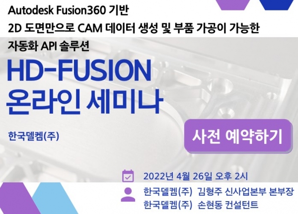 [인더스트리뉴스 최종윤 기자] 한국델켐이 4월 26일 오후 2시, 부품가공 자동화 솔루션 HD-Fusion의 온라인세미나를 진행한다.