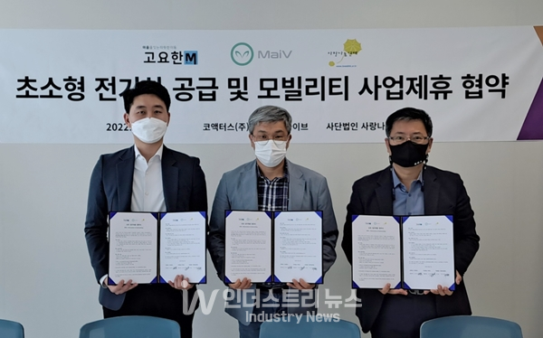 [인더스트리뉴스 이건오 기자] 마이크로 모빌리티 플랫폼 전문기업 마이브(대표 김종배)와 고요한 M택시로 주목받고 있는 코액터스(대표 송민표), 그리고 소외계층을 위한 사업을 추진하는 사단법인 사랑나눔연대(대표 서국현)가 ‘고요한 안심 택시’ 사업을 위해 손을 잡았다.