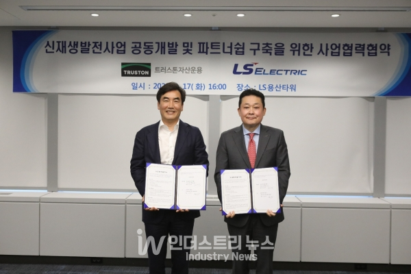 LS일렉트릭은 지난 5월 17일 서울 용산구 LS용산타워에서 트러스톤자산운용과 ‘신재생발전사업 공동개발 및 파트너십 구축을 위한 사업협력협약’을 체결했다고 밝혔다.