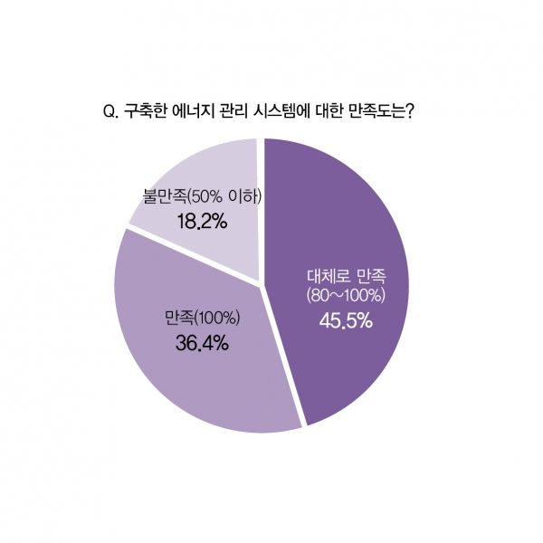 한 응답자는 “에너지관리시스템의 완성도가 좋았다”면서, “에너지절감효과도 가시적으로 확실히 드러났다”고 답했다. 불만족 응답자 중에서는 “아직 보완할 부분이 많았으며, 데이터 적합성 및 신뢰성이 이뤄져야 할 것 같다”는 의견도 있었다. 업계의 만족도 상승에는 IoT 스마트 디바이스 성능 향상과 AI 등 기술의 성숙도가 영향을 미친 것으로 파악된다.