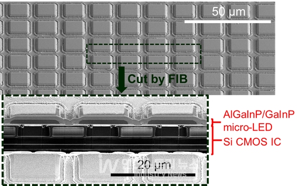 이 과정에서 연구팀은 조명용으로 활용돼왔던 무기물 기반 LED 반도체가 아닌 디스플레이용 LED 반도체층을 설계해 발광을 위한 활성층의 두께를 기존의 1/3로 감소시켜, 픽셀 형성에 필요한 식각 공정의 난도를 크게 낮춰 이번 성과를 얻어냈다.