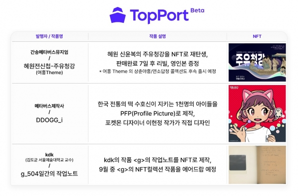 엄선된 NFT 작품을 접할 수 있는 큐레이션형 마켓인 ‘탑포트’는 발행자와 구매자간 거래가 간편하다는 점이 특징이다.
