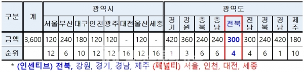 전북도는 그간 국비 집행률 제고, 지연사업 해결 방안 마련 등 사업관리에 주력해 2021년 예산집행 집행실적 전국 2위, 추진실적 평가 결과 ‘우수’ 지자체에 선정됐다. 그 결과, 2022년 하반기 예정된 광역 공모 국비(실링)를 기본배정 120억원, 쇠퇴도·신규 수요 정도 120억원에 인센티브 60억원을 합산한 총 300억원 확보라는 성과를 거뒀다.