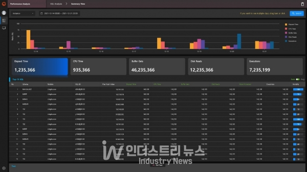 동시에 정확한 분석을 지원하는 기존 온프레미스 ‘맥스게이지’의 SQL Summary와 Top-N SQL 분석 기능을 유지했다. 더불어 시각화의 직관성을 더욱 강화하는 등 고객의 다양한 의견을 취합해 사용자 편의성도 크게 높였다.