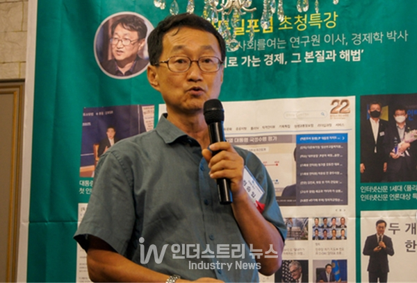 상생과통일포럼 초청특강으로 무대에 오른 정승일 경제학 박사(새로운사회를여는연구원 이사)는 ‘총체적 위기로 가는 경제, 그 본질과 해법’ 강연에서 복지국가를 목표로 경제정책 방향과 체계를 전면 수정해야 한다고 주장했다.
