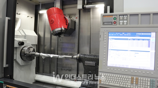 전시장에서 가장 처음 만나볼 수 있는 건 터닝머신 ‘NLX2000’이다. 터릿에 BMT를 설치해 밀링 능력을 개선했다. 특히 머신 바디에서 쿨런트를 순환해 열 변위를 완벽하게 제어하고, 제어 구조 덕에 머신 정밀도까지 높였다.