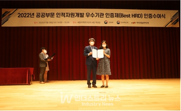 교육부와 고용노동부가 공동 주최하는 인적자원개발 우수기관 인증제는 공공 및 민간기관에서 능력을 중심으로 인재를 채용·관리하고, 재직 중인 근로자에게 지속적인 교육훈련 기회를 제공하는 등 인적자원개발이 우수한 기관에 인증을 부여해 인적자원개발을 촉진하는 사업이다.
