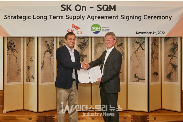 SK온 진교원 COO는 “이번 계약은 글로벌 생산 확대를 뒷받침하고 대외 환경 변화에 선제적으로 대응하기 위한 사업 전략의 일환”이라며, “뛰어난 품질과 신뢰성이 검증된 SQM과의 협력으로 SK온의 핵심 광물 공급망이 더욱 강화됐다”라고 말했다.