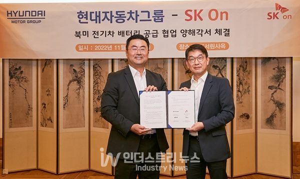 [인더스트리뉴스 이건오 기자] 배터리 전문기업 SK온과 글로벌 완성차그룹 현대자동차그룹이 북미 배터리 공급망 강화를 위해 손을 잡았다. 양사 간 시너지 효과로 북미 전기차 시장에서 주도권을 확보하겠다는 전략이다.