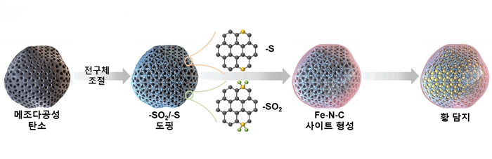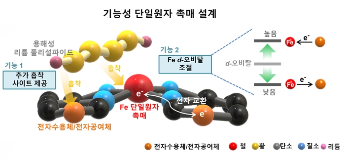 이진우 교수 연구팀은 이번 연구를 통해 리튬 폴리 설파이드의 용해 현상과 전기화학 전환 반응성을 대폭 향상할 수 있는 철(Fe) 원자 기반의 기능성 양극 소재를 개발하는 데 성공했다. 연구팀은 최적화된 전자구조를 지닌 철 원자 기반 기능성 소재를 양극에 도입했다. 이로써 리튬 폴리 설파이드의 용해 현상을 효율적으로 억제할 수 있는 효과뿐만 아니라 리튬 폴리 설파이드가 불용성의 리튬 설파이드로 전환될 수 있는 반응성 또한 개선할 수 있었다. 더불어 전지 내부에 소량의 전해액 양을 사용하더라도 높은 가역 용량, 구동 전압, 그리고 수명 안정성을 구현할 수 있었다.