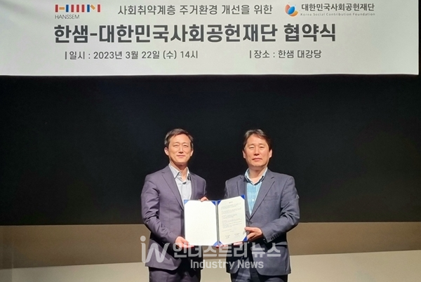 대한민국사회공헌재단(이사장 김영배)은 한샘(대표 김진태)과 자원 선순환 사회공헌 사업이면서 미혼모와 자립청소년 등 주거 환경이 열악한 이들을 지원하는 ‘생활가구지원사업’을 위한 업무협약을 체결했다고 지난 23일 밝혔다.