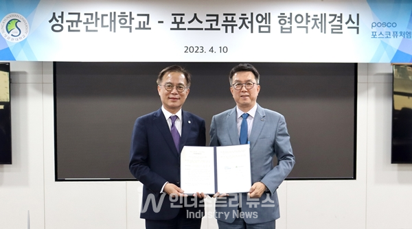 포스코퓨처엠은 지난 10일 성균관대와 맞춤형 학위 과정 ‘e-Battery Track’ 협약을 체결했다고 밝혔다. 서울 종로구 성균관대 600주년 기념관에서 열린 협약식에는 포스코퓨처엠 김준형 사장과 성균관대 유지범 총장 등이 참석했다. 지난달 연세대와의 MOU 이후 2주 만의 인재육성 협약이다.