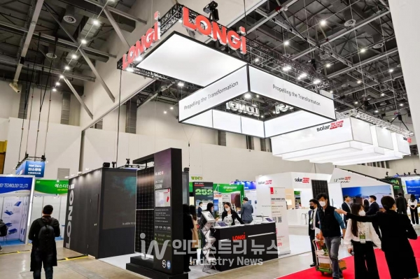 론지는 지난 4월 12일 대구에서 열린 그린에너지엑스포 2023에서 Hi-MO 6 모듈과 신안시스템(Sinan System) 등을 선보이며 주목을 끌었다.