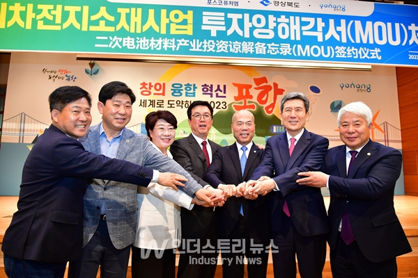 포스코퓨처엠은 3일 화유코발트, 경상북도, 포항시와 투자양해각서(MOU)를 체결하고 양극재 중간소재인 전구체와 음극재 생산능력 확대를 위한 투자를 추진하기로 했다. 협약식에는 포스코퓨처엠 김준형 사장, 화유코발트 천 쉬에화(陈雪华) 동사장, 이달희 경상북도 경제부지사, 이강덕 포항시장 등이 참석했다.