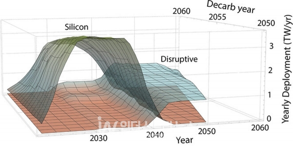 NREL 연구진은 “파괴적 기술(disruptive technology)을 통해 생산 가능한 PV 규모가 크게 확대될 것”이라며, “연간 생산 가능 규모가 향후 10년에서 15년 사이 2.9TW에서 3.7TW까지 확장될 수 있고 목표 비용은 6000억 달러에서 6600억 달러로 늘어날 것”이라고 밝혔다.