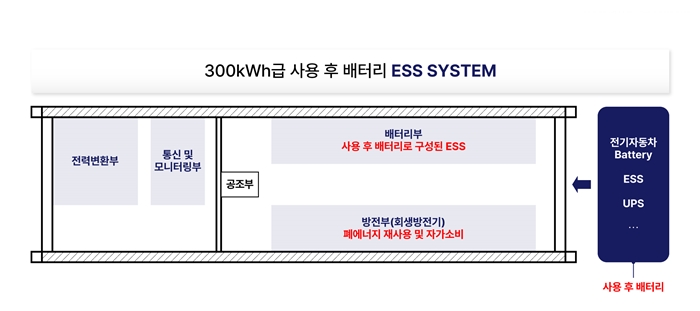 이번에 선보인 시스템은 친환경적이고 경제적인 전력공급 솔루션이라고 언급한 회사 관계자는 “전기차 폐배터리 내 에너지가 전력변환부를 거쳐 ESS에 저장될 수 있도록 하고 전력저장고 역할을 하는 ESS 내 에너지를 재공급해 폐자원을 재자원화하는 유기적인 비즈니스 모델로 개발했다”며, “사용한 배터리를 재활용할 수 있어 새로운 부가가치 창출, 에너지·자원 절약과 탄소배출 저감까지 가능하다”고 소개했다.