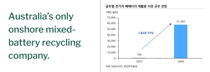 특히, 양사는 최우선적으로 호주 파트너사와 협력해 2030년에는 현재보다 약 100배 이상 성장할 폐배터리 리사이클 사업 진출에 나선다. 호주 파트너사와 JV를 설립해 리튬인산철(LFP) 배터리에 필수적인 양극재 기술을 이전받아 기존 LFP 배터리 보다 성능이 우수한 양극재 개발 및 상용화도 계획이다. 또 우수한 기술력을 보유한 국내 셀파우치필름 제조기업에 대하 인수도 적극적으로 검토하고 있다고 회사 측은 전했다.
