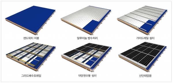지붕표면엔 태양광 모듈과 고내식성 알루미늄 합금만 노출되며 4면의 태양광 모듈은 직결 체결됐다. 회사에 따르면 20년 이상의 지붕수명을 보장한다. 국내 최고 수준의 구조성능(내풍압 91 m/s)도 확보했다.