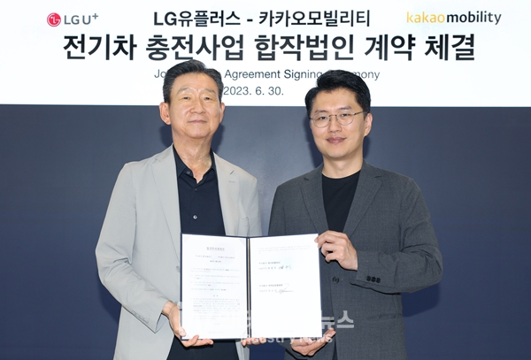 LG유플러스(대표 황현식)는 카카오모빌리티(대표 류긍선)와 전기차 충전 사업을 위한 합작투자(Joint Venture) 계약을 체결하며 전기차 충전 사업에 본격 진출한다고 7월 3일 밝혔다.