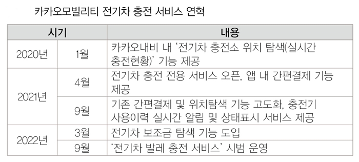 카카오모빌리티는 2021년 카카오내비 앱에서 전기차 충전 서비스를 선보인 이후 간편결제, 충전기 위치 탐색, 충전기 사용 이력 실시간 알림, 충전기 상태 표시 등 스마트 기능을 지속 확충하며 접근성과 편의성을 확대해왔다.