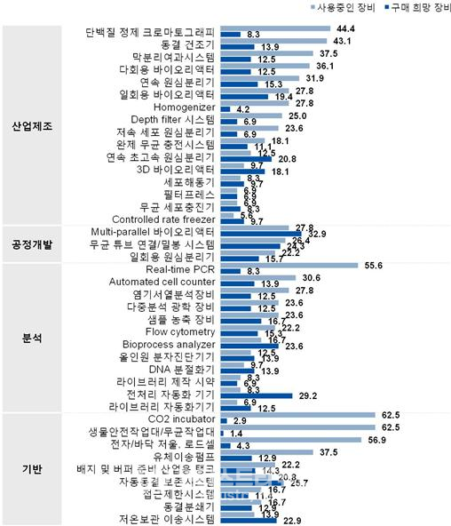 기계연은 ‘신산업 제조 플랫폼 구축을 위한 바이오 장비 수요조사’를 실시해 △수요기업의 사용 장비 현황 및 구매 희망 장비 △장비 기업의 판매 장비 현황 및 판매 희망 장비를 파악했다.