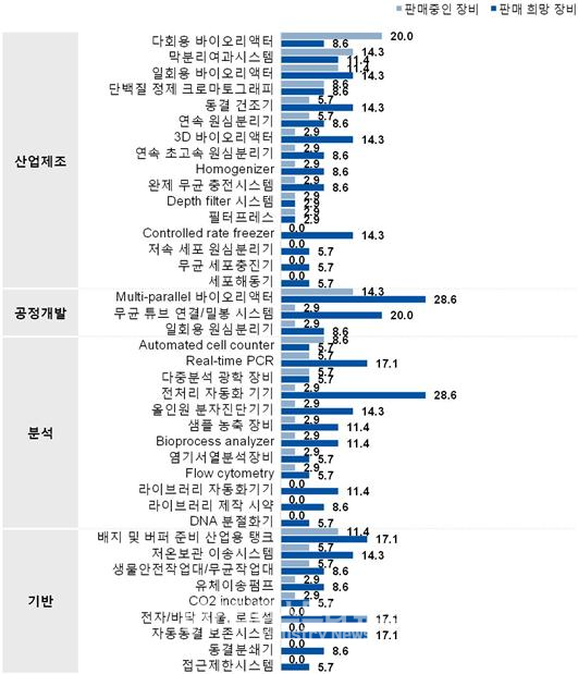 바이오 장비는 생명공학 기술을 이용하는 바이오산업에서 사용되는 장비로, 바이오, 제약, 의료 등 수요 산업 특성상 요구 성능이 까다롭고 품목별로 외산 브랜드 제품이 독과점하는 특징을 보인다.