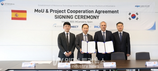 [인더스트리뉴스 조창현 기자] 국내기업이 보유한 ICT 기술이 해외 연구기관에 적용될 전망이다. 글로벌 XR(확장현실) 테크기업 버넥트(대표 하태진)가 지난 4일, 스페인에서 칸타브리아 대학교 환경수리학 연구소(IHCantabria)와 연구소 내 수리실험 인프라를 디지털트윈(Digital Twin, DT)으로 구축하기 위한 MOU를 체결했다고 12일 밝혔다.