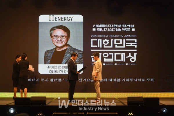 [인더스트리뉴스 최용구 기자] 에이치에너지가 2023 대한민국 산업대상에서 에너지 신기술 부문 ‘산업통상자원부 장관상’을 수상했다.