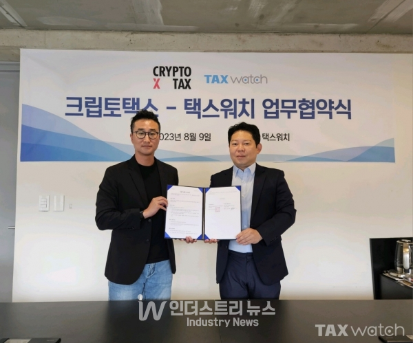 [인더스트리뉴스 최종윤 기자] 가상자산 세금 서비스 플랫폼 ‘크립토택스(대표 윤동환)와 세금 콘텐츠를 만드는 미디어 플랫폼 택스워치(대표 조용만)가 콘텐츠 업무제휴 협약을 9일 체결했다.