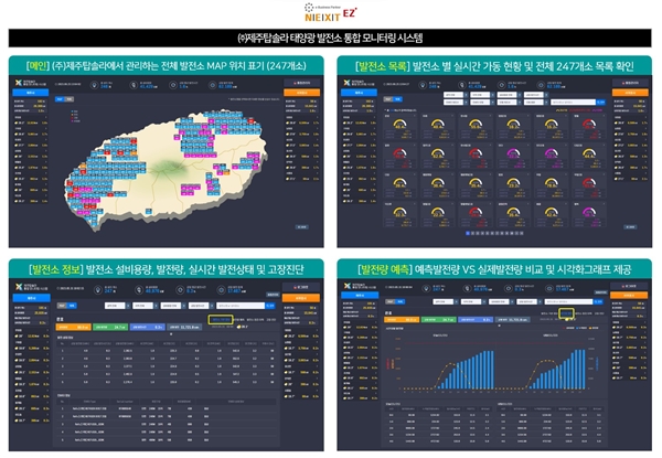 이번에 시험을 통과한 넥스트이지의 통합모니터링 시스템은 제주탑솔라가 유지·관리하고 있는 제주 지역 250여개 태양광발전소의 현황, 발전 상태, 예측 발전량 등을 모니터링해준다. 특히, AI 발전량 예측모델을 적용한 AI 알람을 통해 현재 실제 발전량 값과 예측 발전량 값을 비교해 알려줌으로써 유지·관리의 효율성을 높일 수 있다.