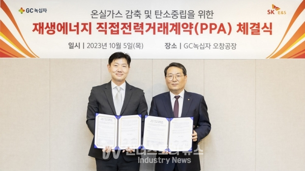 [인더스트리뉴스 최용구 기자] GC녹십자(대표 허은철)는 SK E&S(대표이사 사장 추형욱)와 지난 5일 충북 오창공장에서 ‘재생에너지 직접 전력 거래 계약(이하 PPA)’을 체결했다.