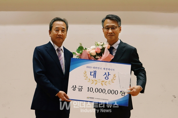 [인더스트리뉴스 이건오 기자] 한국재생에너지산업발전협의회 주관으로 10월 25일 국회의원회관 대회의실에서 개최된 제5회 재생에너지의 날 기념식에서 신성이엔지 이완근 회장이 ‘2023 대한민국 재생에너지 대상’을 수상했다. 현장에서는 신성이엔지 최수옥 부사장이 대리 수상했다.