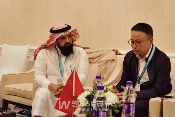그는 중국-사우디아라비아 에너지 포럼에서 사우디아라비아 에너지부 차관과 함께 대담하며 에너지 전환 및 협력에 대해 논의했다.
