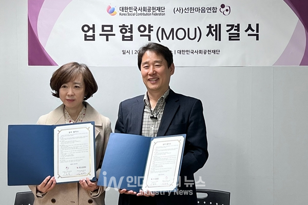 [인더스트리뉴스 이건오 기자] 대한민국사회공헌재단(이사장 김영배)이 지난 11월 8일, 사단법인 선한마음연합(공동대표 이소연)과 함께 주거환경을 지원하기 위한 업무협약을 체결했다고 밝혔다.