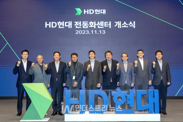 HD현대는 경기도 성남시 HD현대 글로벌R&D센터(GRC)에서 전동화센터 개소식을 개최했다고 13일 밝혔다. 행사에는 △HD현대 정기선 부회장 △HD현대사이트솔루션 조영철 사장, 이동욱 사장 △HD현대일렉트릭 조석 사장 △HD한국조선해양 김성준 부사장 △HD현대중공업 특수선사업부 주원호 부사장 △HD현대로보틱스 김완수 부사장 등 그룹 내 주요 인사들이 참석했다.