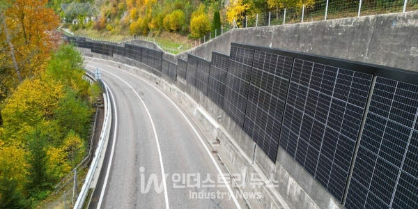 [인더스트리뉴스 최용구 기자] 스위스 도로에 옹벽을 활용한 수직형 태양광 모듈이 설치됐다. 알루미늄과 스테인리스 스틸로 구성된 이 모듈은 아스팔트와 근접성을 고려한 예외적인 부식 방지 요건 등을 충족한다.