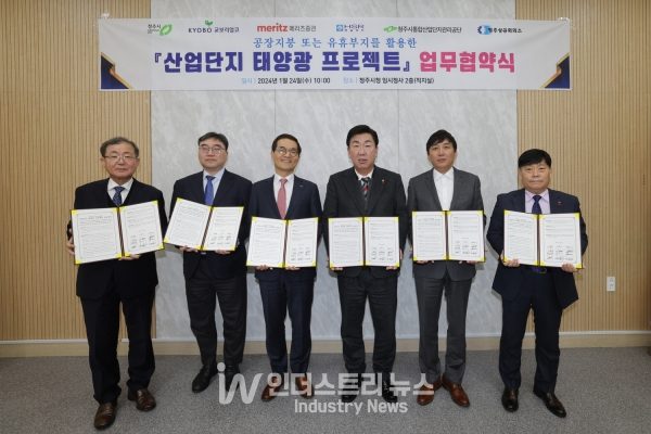 시는 지난 24일 교보리얼코, 메리츠증권, 한솔루트, 청주상공회의소 등과 ‘산업단지 지붕형 태양광 프로젝트 업무협약’을 체결했다.