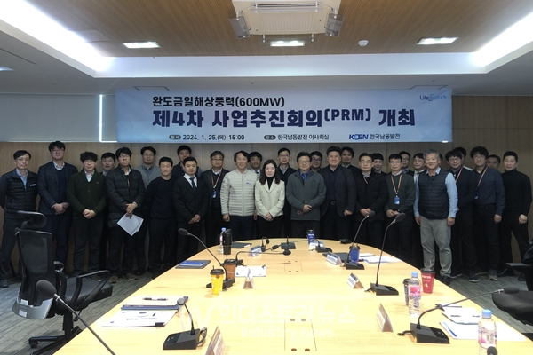 한국남동발전(사장 김회천)은 지난 25일, 남동발전 중점추진사업 ‘완도금일해상풍력(600MW)’의 성공을 위해 사업 참여사(기자재, 설계, OE, 인허가, 인증 및 금융자문)와 함께 ‘완도금일해상풍력 제4차 사업추진회의’를 개최했다고 밝혔다.