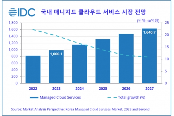한편 한국IDC는 국내 매니지드 클라우드 서비스 시장은 향후 5년간 연평균 14.4%씩 성장해 오는 2027년 1조6,407억원 규모를 기록하게 된다는 전망을 내놨다. 또 한국IDC는 국내 매니지드 서비스 시장 성숙도가 높아짐에 따라 관련 서비스 사업자가 수행하는 역할도 보다 확대될 것으로 내다봤다.