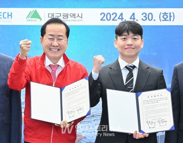 [인더스트리뉴스 정한교 기자] 대구광역시(시장 홍준표)는 30일 오후 4시 대구시청 산격청사에서 에스제이이노테크(대표 정성호)와 ‘이차전지 모듈 및 팩 제조시설’ 건립을 위한 투자협약을 체결했다고 밝혔다.