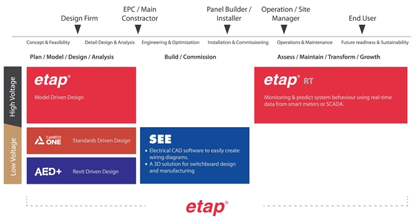 주요 제품 및 솔루션으로는 태양광, 풍력 등 신재생에너지발전과 에너지 운용, 저장에 이르기까지 거의 모든 부분에 적용할 수 있는 ‘ETAP’이 있다. 전 세계적으로 가장 많이 사용되고 있는 글로벌 No.1 전력계통 해석 프로그램으로 알려져 있다.