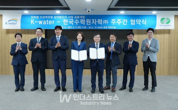 한국수자원공사(사장 윤석대)는 지난 11일 대전 본사에서 한국수력원자력(사장 황주호)과 경상북도 안동시 임하댐에 47.2MW 규모 수상태양광발전소를 건설하기 위한 주주간 협약을 체결했다고 지난 11일 밝혔다.