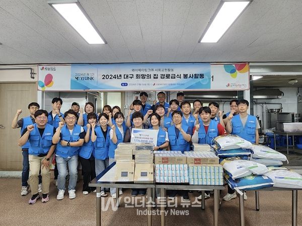 ESG 경영의 일환으로 지역 사회와의 상생을 통한 지속가능경영의 실천을 위해 추진된 이번 봉사활동은 와이제이링크 임직원 26명이 참가했다. 와이제이링크는 봉사활동을 위해 대구 남구에 위치한 경로 무료 급식소 ‘희망의 집’을 찾았으며 급식 배식, 설거지, 어르신 안내, 교통 통제 등 파트 및 인원별로 업무를 분장해 봉사를 진행했다.